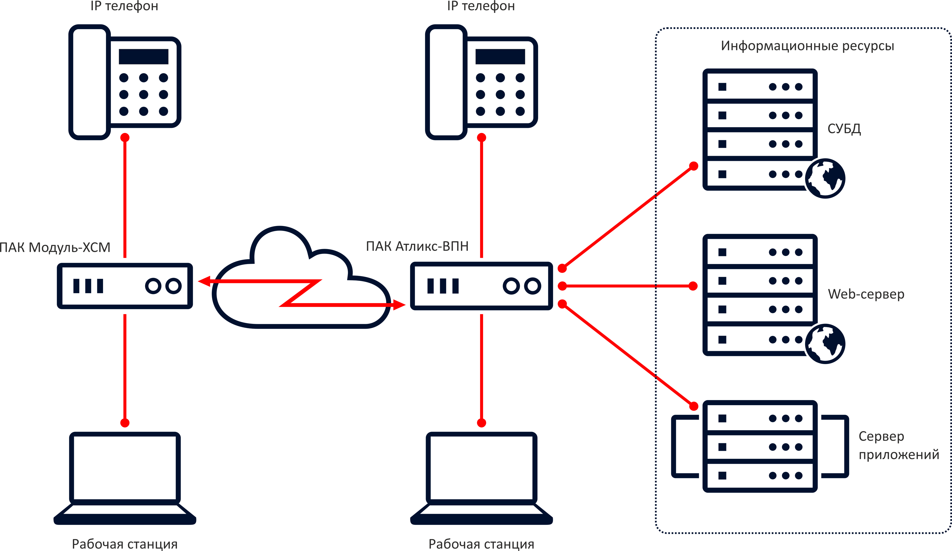 ПАК «Атликс-ВПН» обеспечивает шифрование, целостность и достоверность передаваемой информации в рамках доступных IP-сетей (в том числе, сети Интернет).